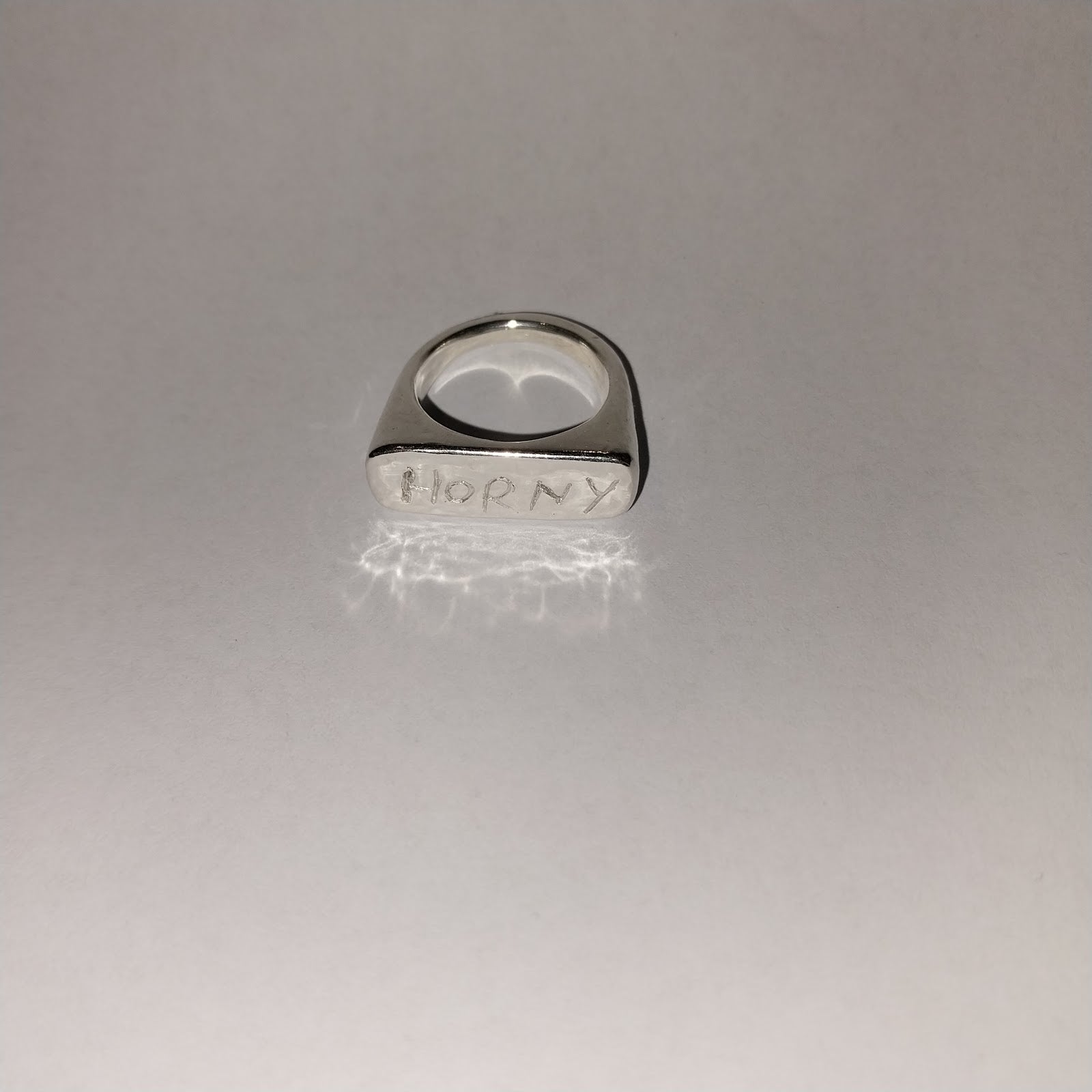 Hand carved HORNY on the front of the signet